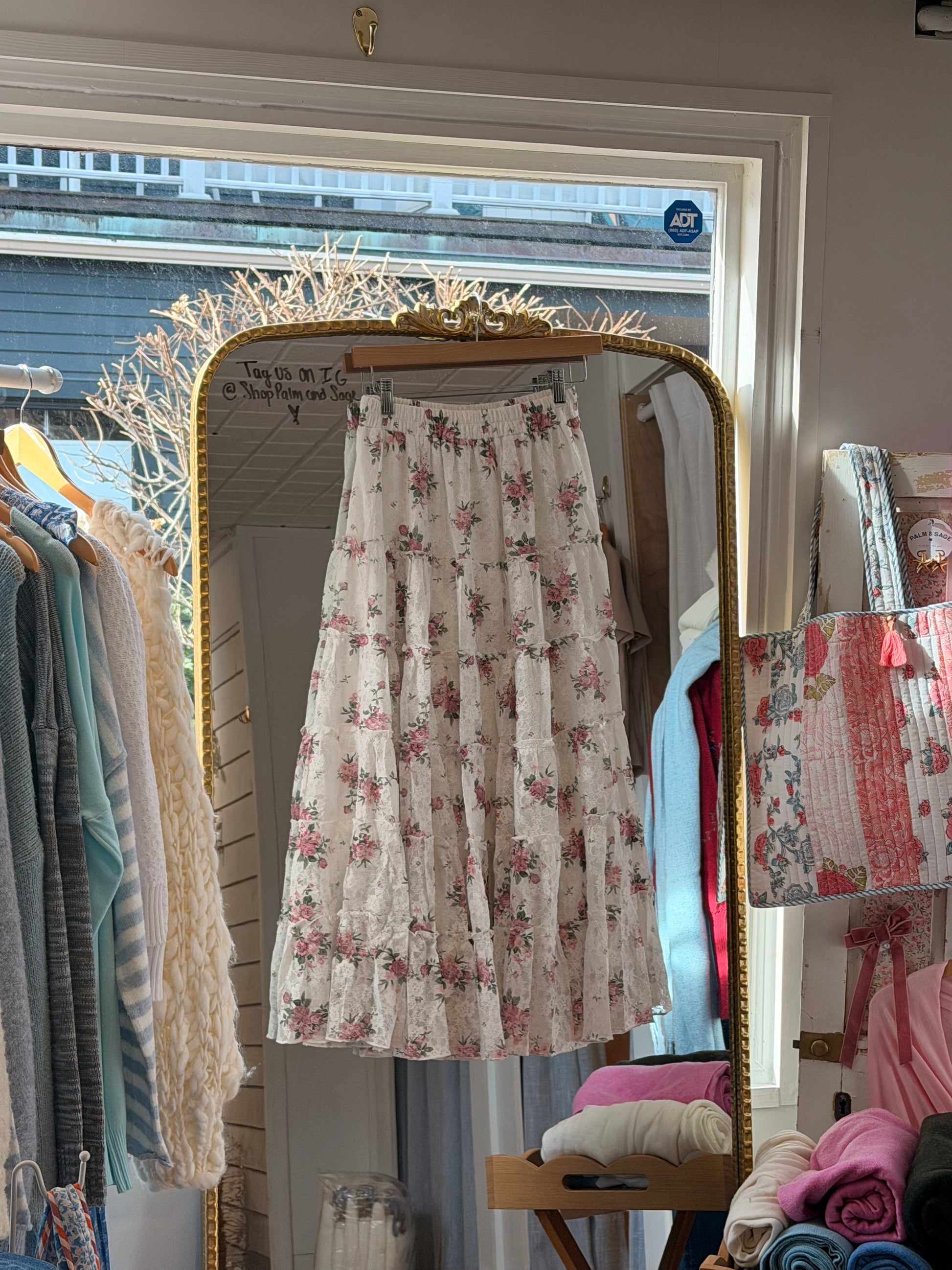 Swirl into Valentine's season with the Alexandra Skirt—a breezy maxi that whispers romance through every step. Soft florals dance across flowing fabric that feels as gentle as it looks, making this your go-to for date nights, garden parties, or any occasion that deserves a little magic. Effortless elegance has never been this fun.