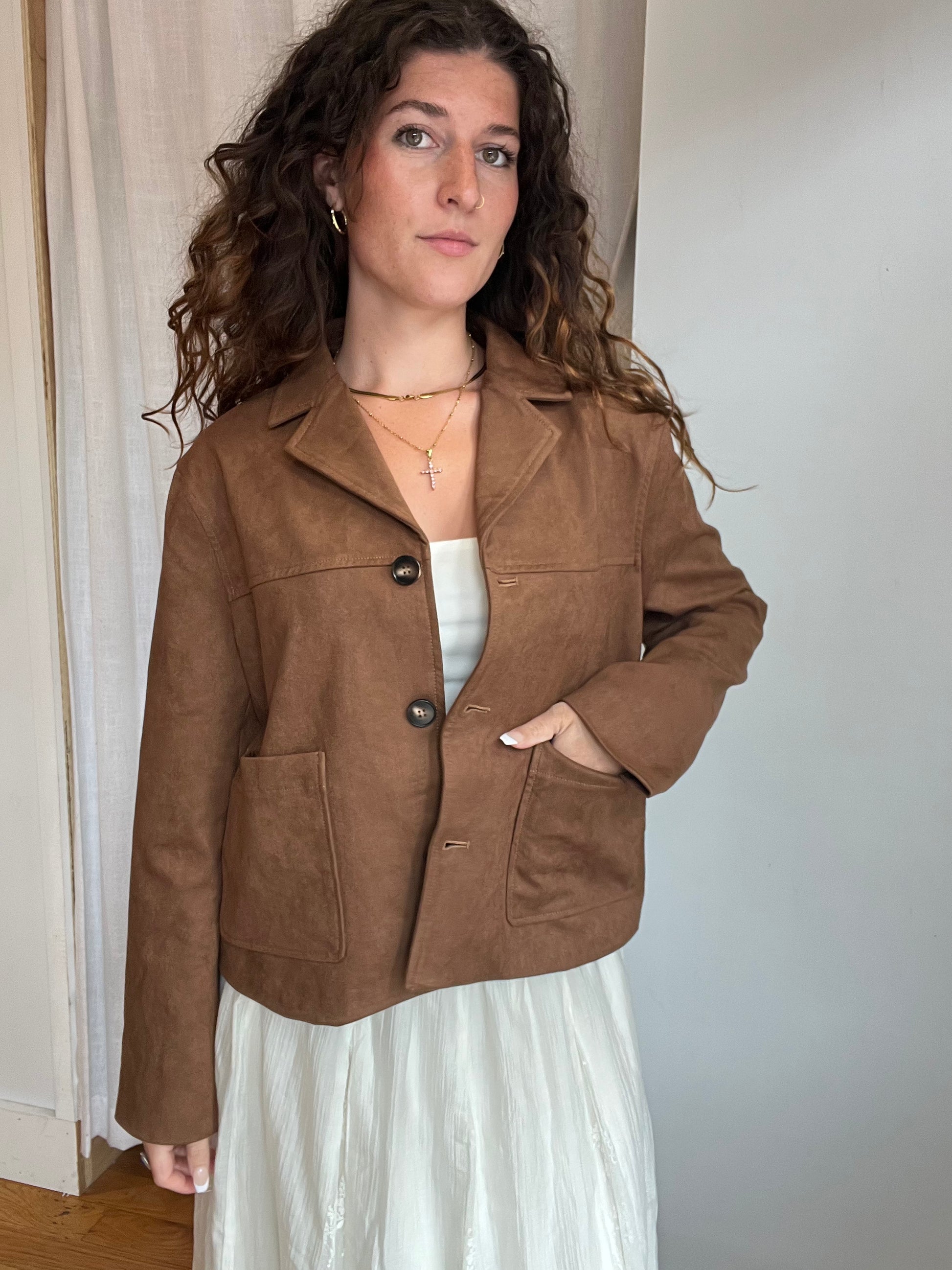 The Brent Suede Jacket is your go-to for smooth style as the seasons shift. Its soft suede finish and easygoing fit make it perfect for layering over your favorite fall looks, adding just the right touch of warmth and flair to brighten up cooler days. Get ready to fall in love!