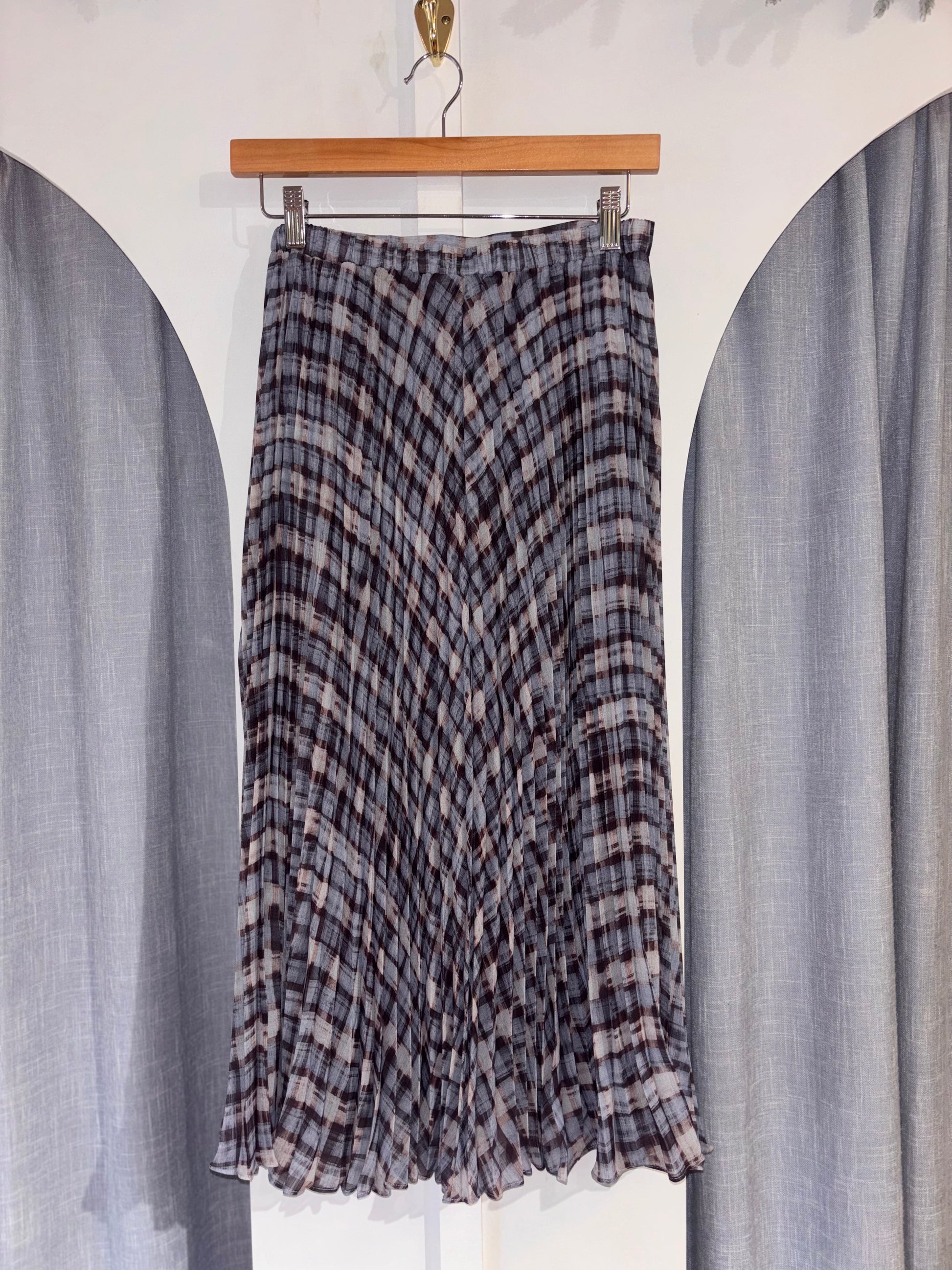 This blue-toned plaid beauty features elegant pleats and a luxuriously soft fabric with amazing stretch that moves with you. Whether you're heading to brunch, the office, or a night out, this versatile midi transitions seamlessly from polished to casual. Comfort meets sophistication in a skirt that works as hard as you do.