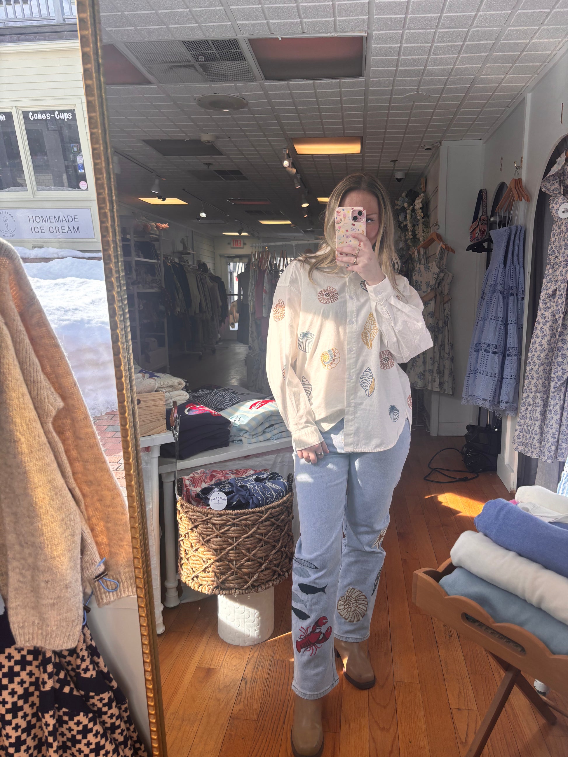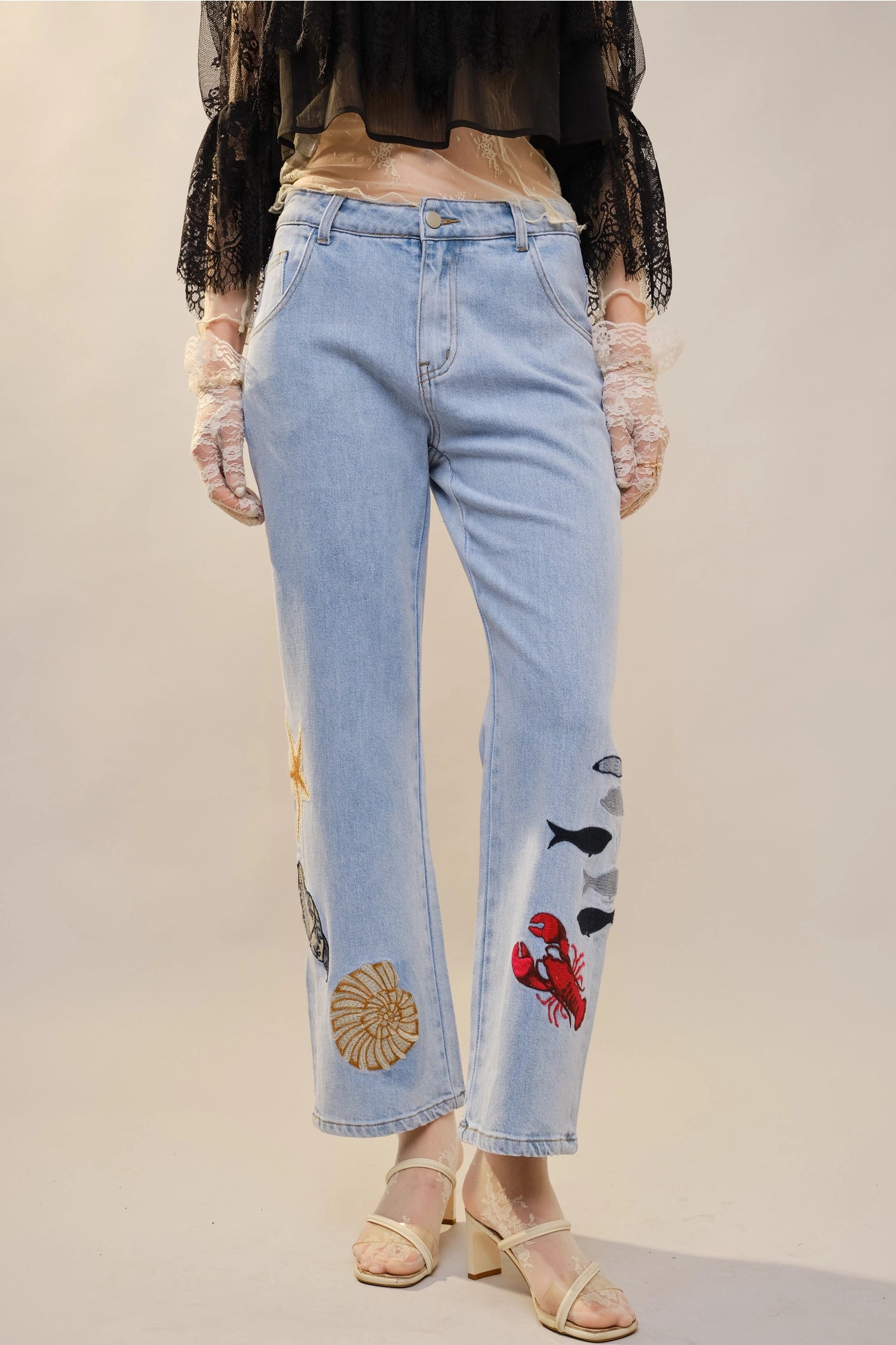 Light wash denim meets coastal charm in these Deep Sea Jeans. Featuring decorative patches scattered across the legs, they blend relaxed beachy vibes with everyday wearability. The faded finish adds character and dimension, perfect for casual outings or laid-back weekends. Pair with your favorite tee or oversized shirt for an effortless, seaside-inspired look.