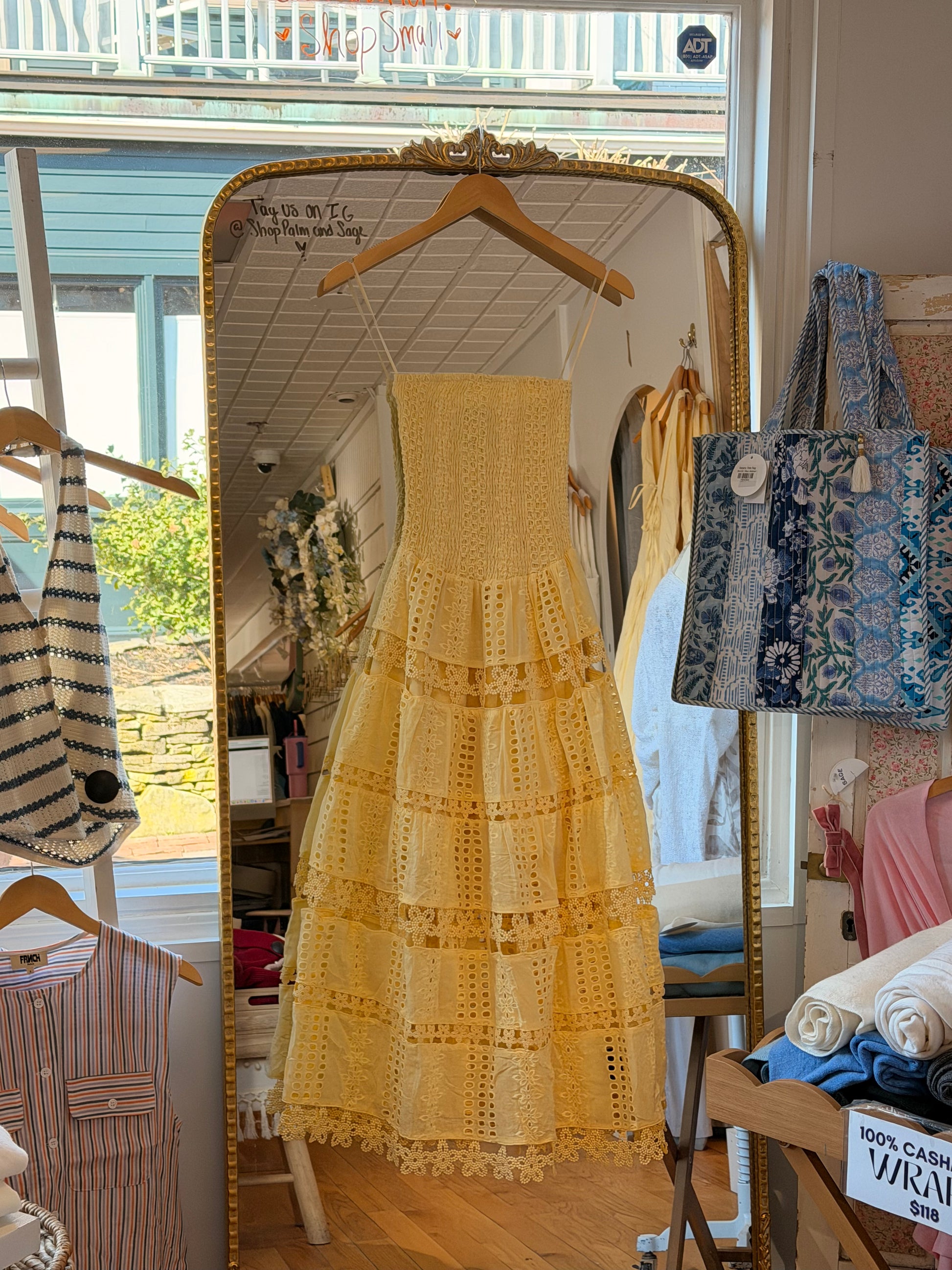 Embrace the season in the Elizabeth Midi Dress, a charming eyelet floral design that captures the essence of spring. This cute midi silhouette features delicate flower patterns that evoke sunshine and joy, perfect for celebrating warmer days ahead. The flattering length and cheerful aesthetic make it an ideal choice for casual outings, garden parties, or any occasion calling for a touch of botanical beauty. Feel the happiness of spring with every wear.