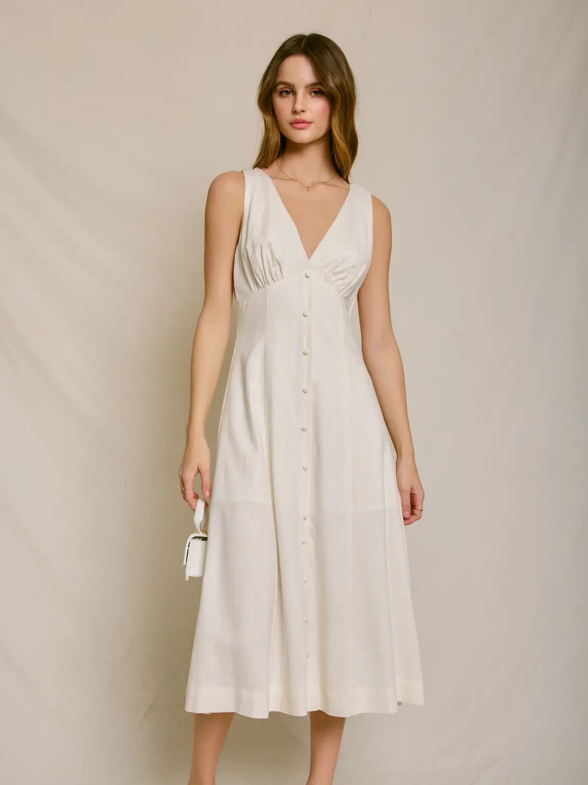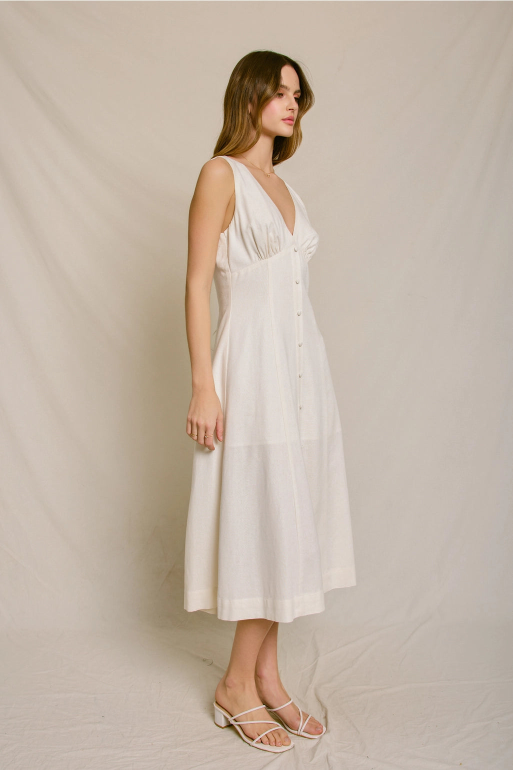 Slip into effortless elegance with this charming midi dress that feels as good as it looks. Featuring delicate button details and a gracefully flowing silhouette, it's the perfect blend of comfort and style. Whether you're heading to brunch or a casual evening out, this dress delivers that coveted relaxed-yet-put-together vibe. Soft, breathable fabric keeps you cozy all day long, while the flattering cut works beautifully for any occasion.