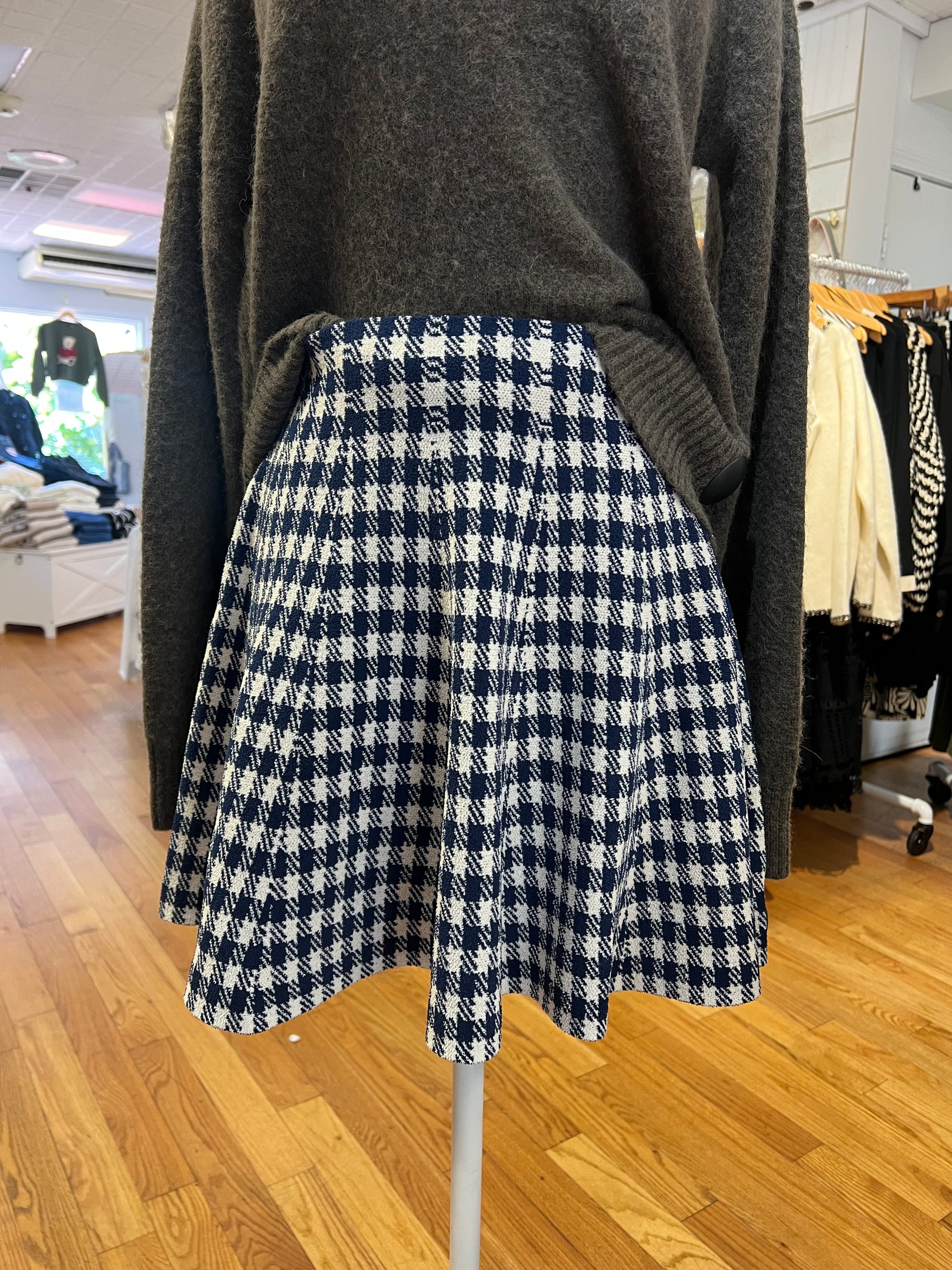 Step into charm with the Night We Met Skirt, crafted from soft material that feels as good as it looks. Featuring a playful navy houndstooth pattern, this skirt brings a timeless twist to your wardrobe. Perfect for twirling through the day or dancing into the night, it’s your go-to piece for effortless style with a fun flair.