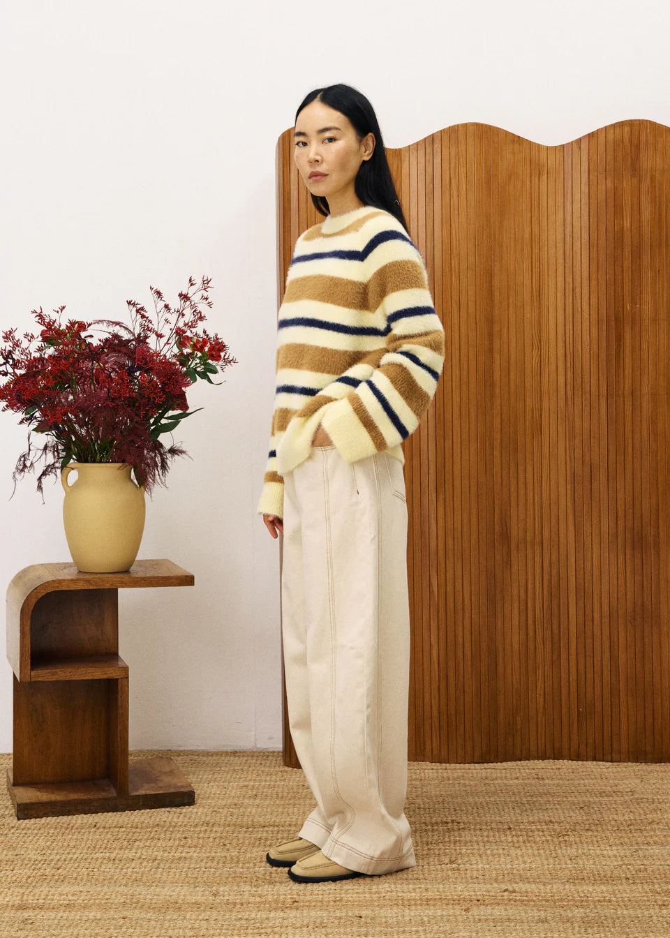 Wrap yourself in cozy vibes with the Himalayen Sweater, where playful wide stripes meet ultra-soft fluffy knit. This straight, loose-fitting style features a classic round neckline and ribbed finishes that keep everything in place while you lounge, work, or adventure. Perfect for layering or wearing solo, it's the effortless piece your wardrobe's been craving—comfort that doesn't compromise on style.