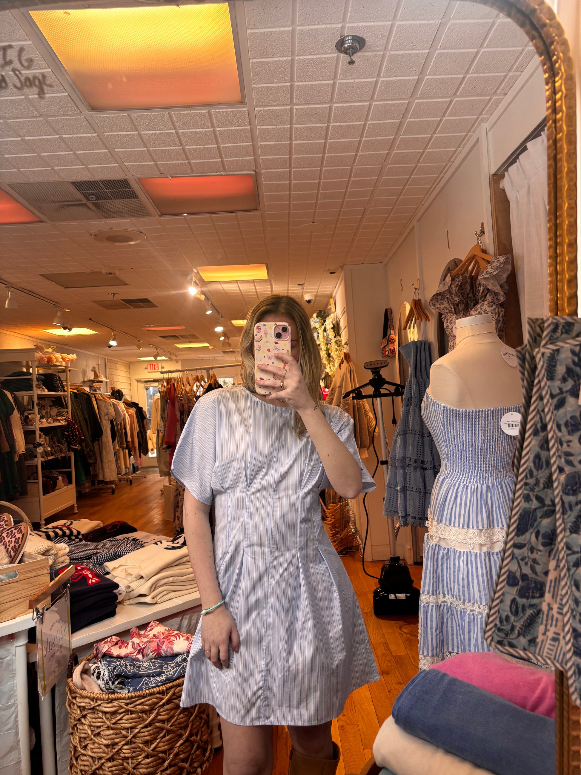 Isn't She Lovely Mini Dress Turn heads in this charming blue and white striped mini dress, perfect for warm-weather adventures. The crisp striped pattern brings a timeless nautical vibe, while the short sleeves keep things breezy and comfortable. Whether you're heading to brunch, a casual date, or a weekend getaway, this playful piece pairs effortlessly with sneakers, sandals, or your favorite accessories. A wardrobe essential that's equal parts fun and flattering.