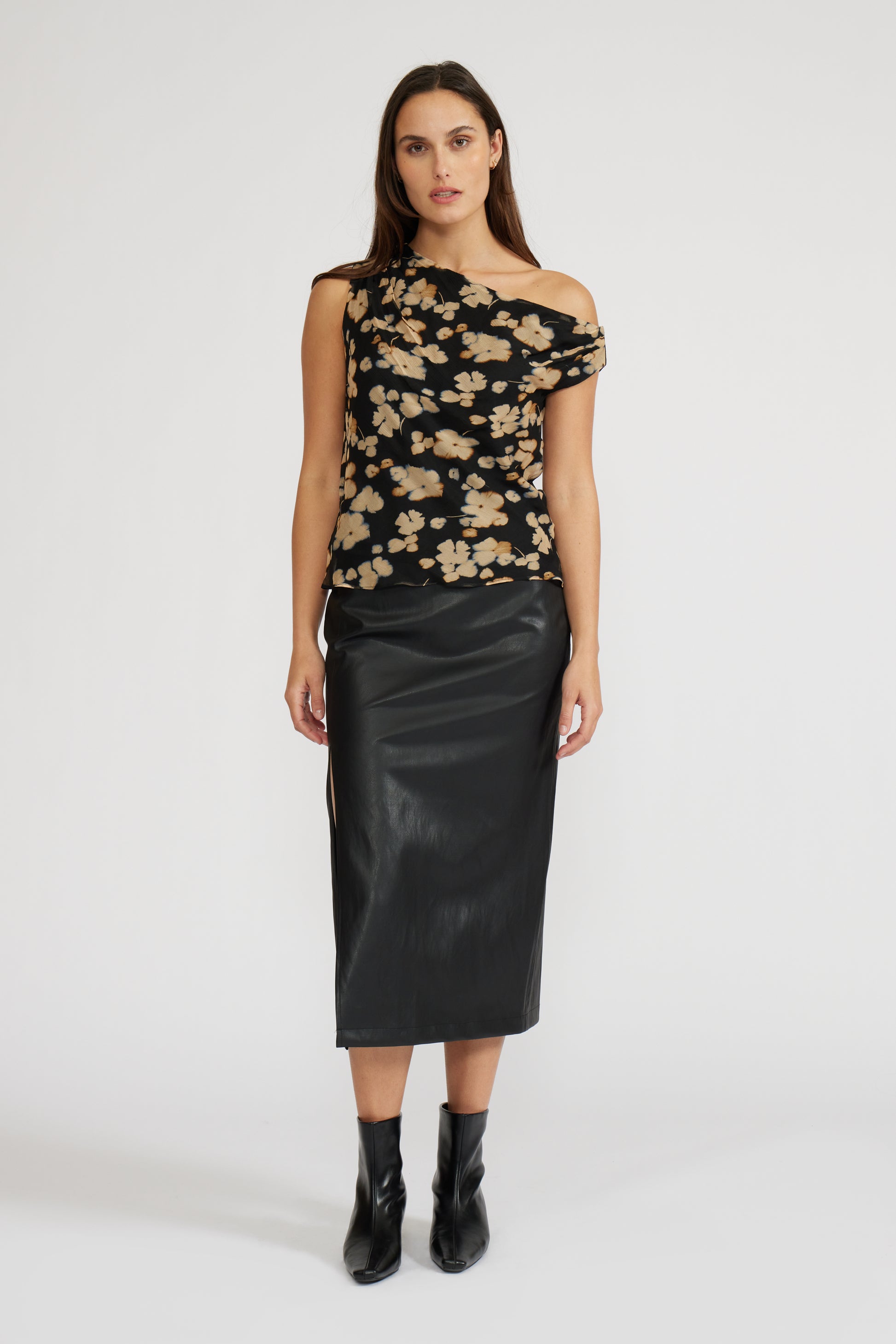Add a flirty touch to your wardrobe with the Tilly Top, featuring a black base adorned with delicate beige flowers and a fun one-shoulder silhouette. Perfect for playful days or stylish nights, it’s a charming way to show off your unique vibe.