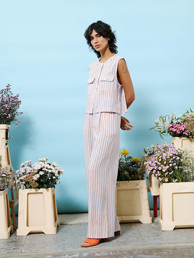 Layer up with the Vienna Vest, a striped button-up that brings effortless charm to any outfit. Perfect for throwing over your favorite tee or pairing with a crisp white shirt, this versatile piece transitions seamlessly from casual weekends to polished weekday looks. The classic stripes add visual interest while the structured fit keeps you looking put-together. Whether you're dressing it up or down, the Vienna Vest is your new go-to for that "I woke up like this" vibe.