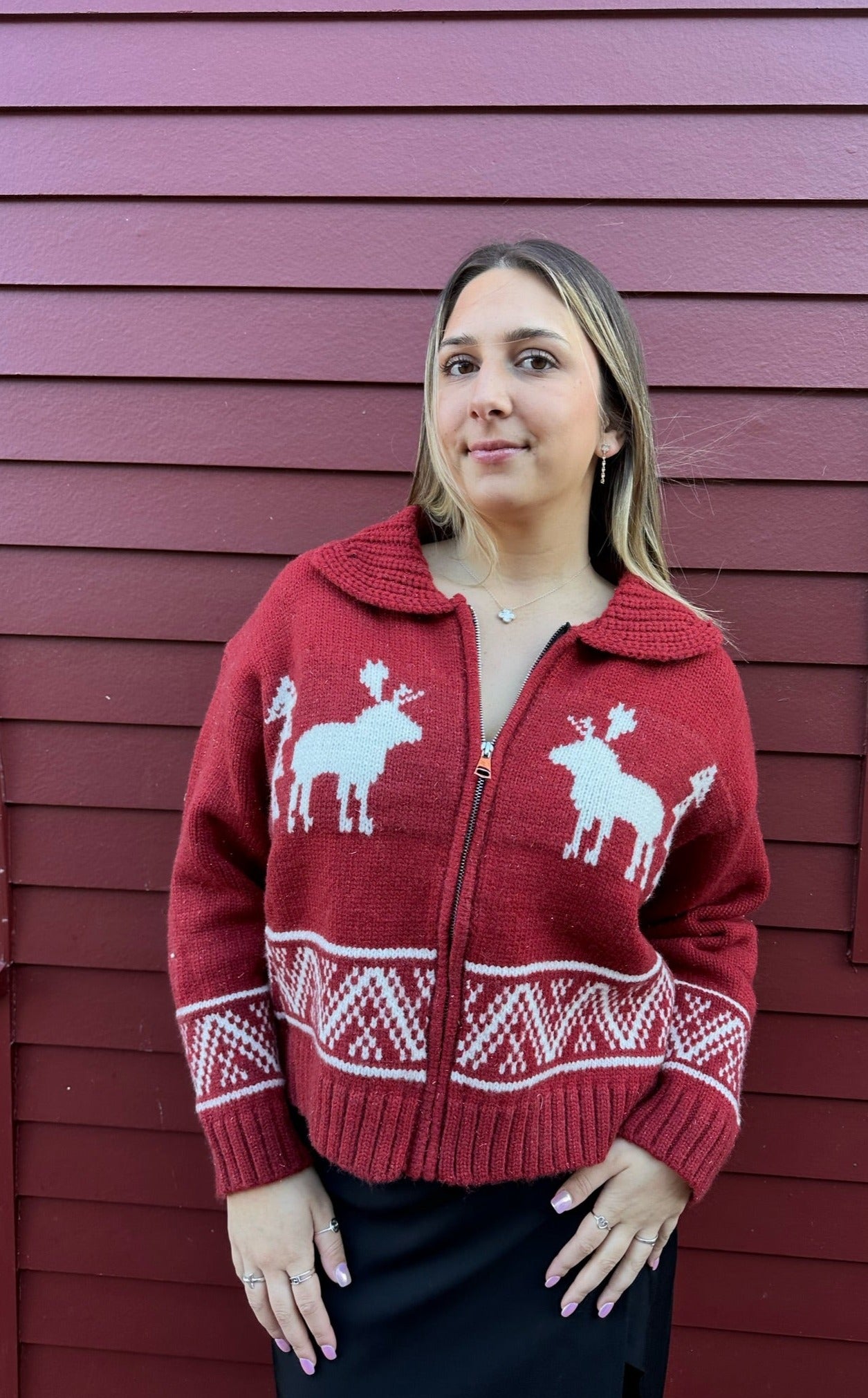 Keep cozy and stylish with the Vixen Sweater! It features a classic shawl collar and an adorable reindeer design, plus a front zipper for easy wear. It's the perfect "one size fits most" piece to add a little Christmas cheer to your everyday style. Feeling festive? Yule get no complaints here!